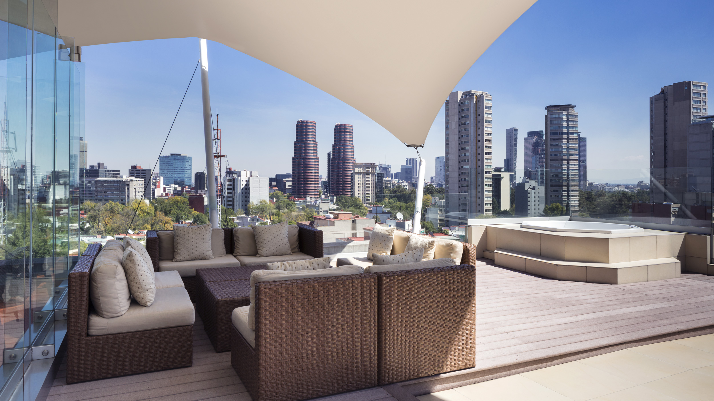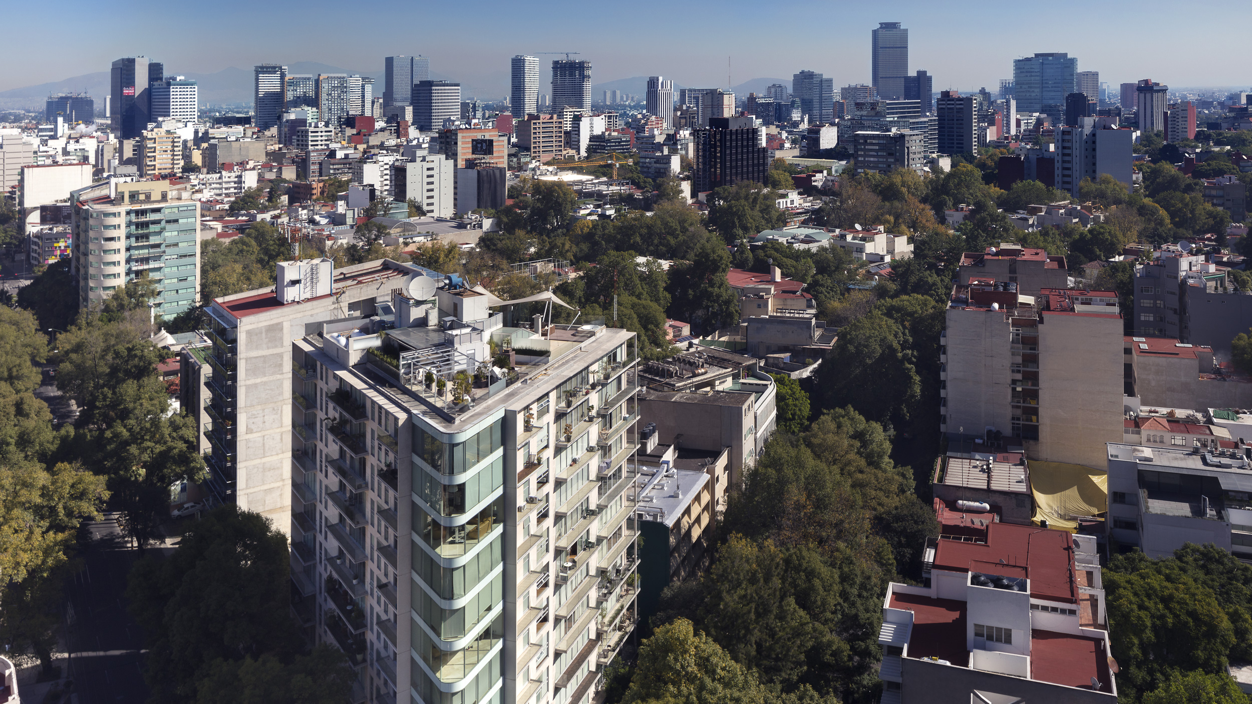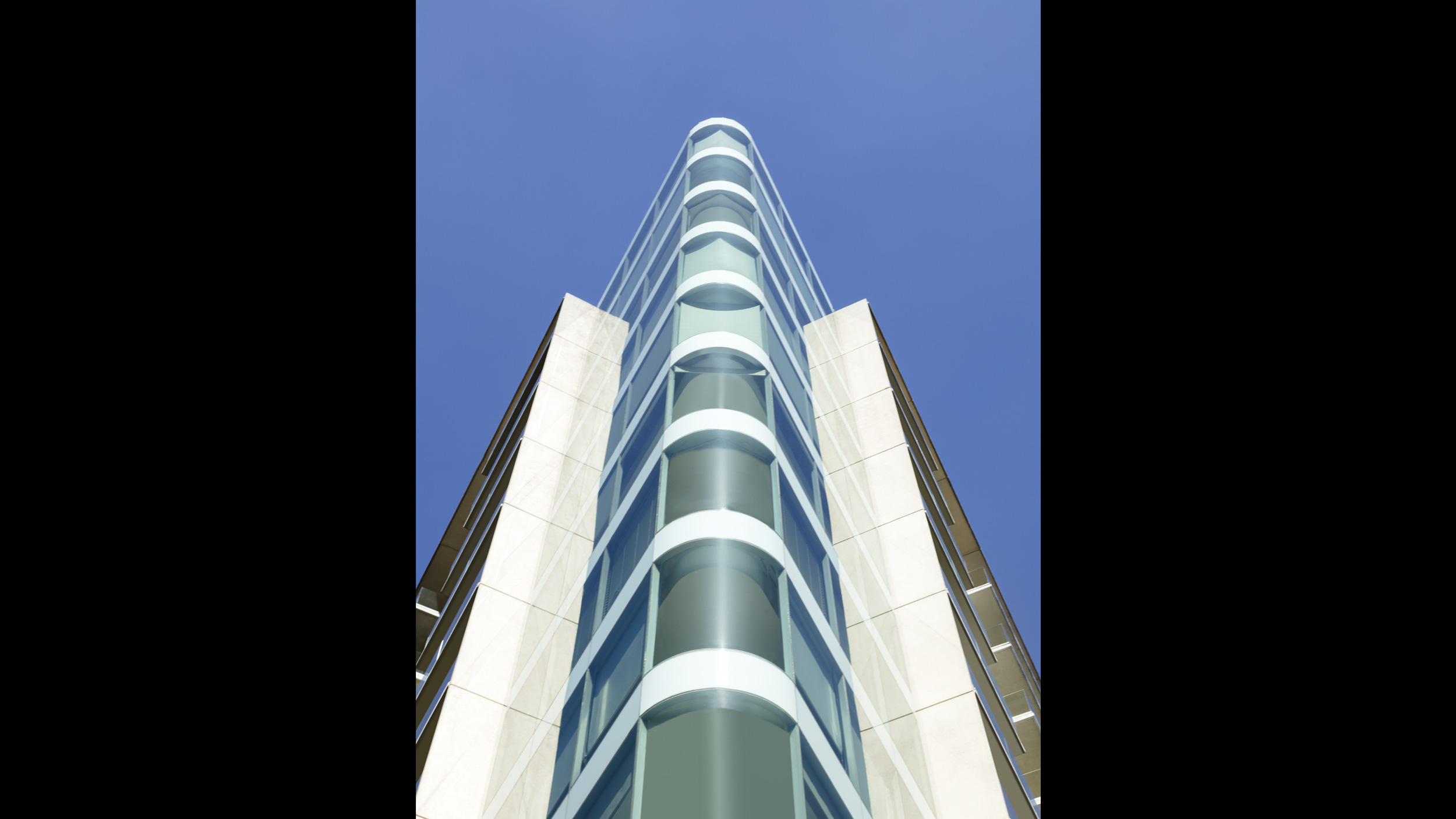 • La fachada mixta combina muros macizos con ventanas y cuenta con balcones para todos los departamentos, enfatizando su vista hacia la avenida Campos Elíseos y provocando la interacción entre el exterior e interior.
