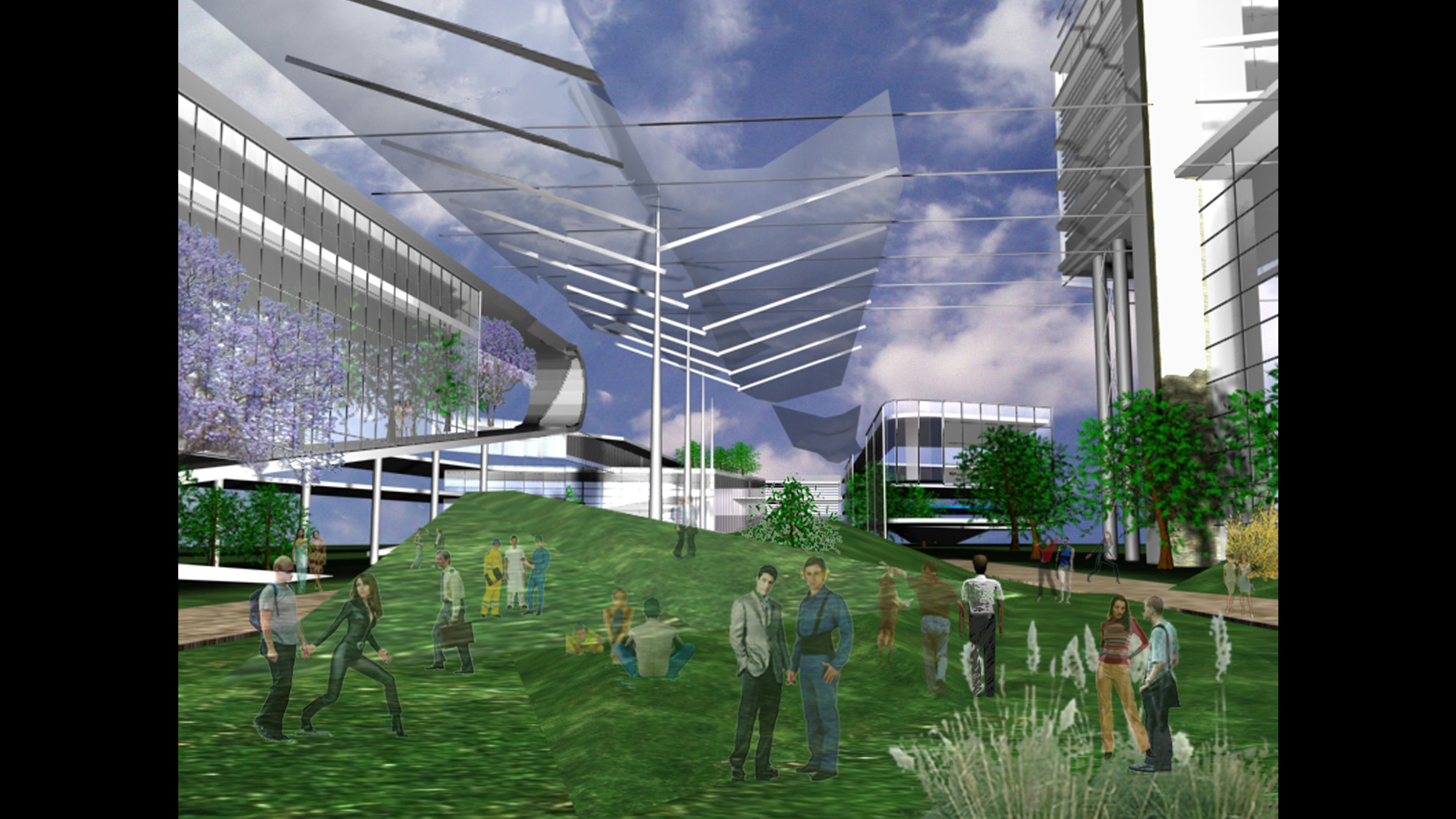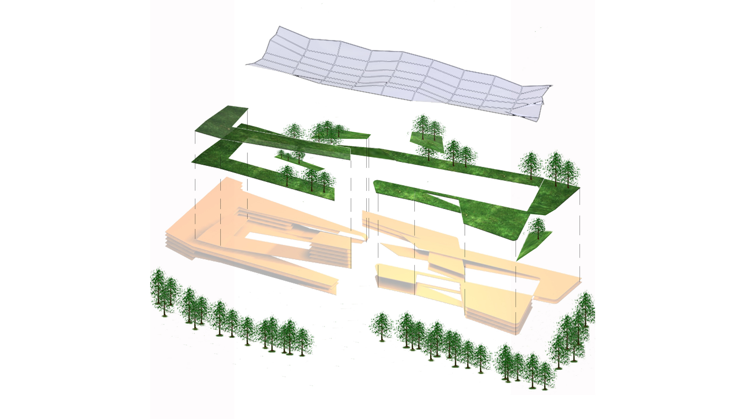 • Se basa en un espacio abierto, donde el edificio abraza y protege un área verde, motor de la idea del proyecto.