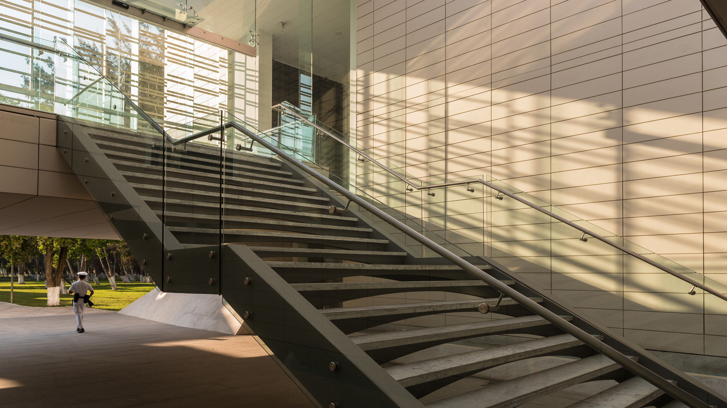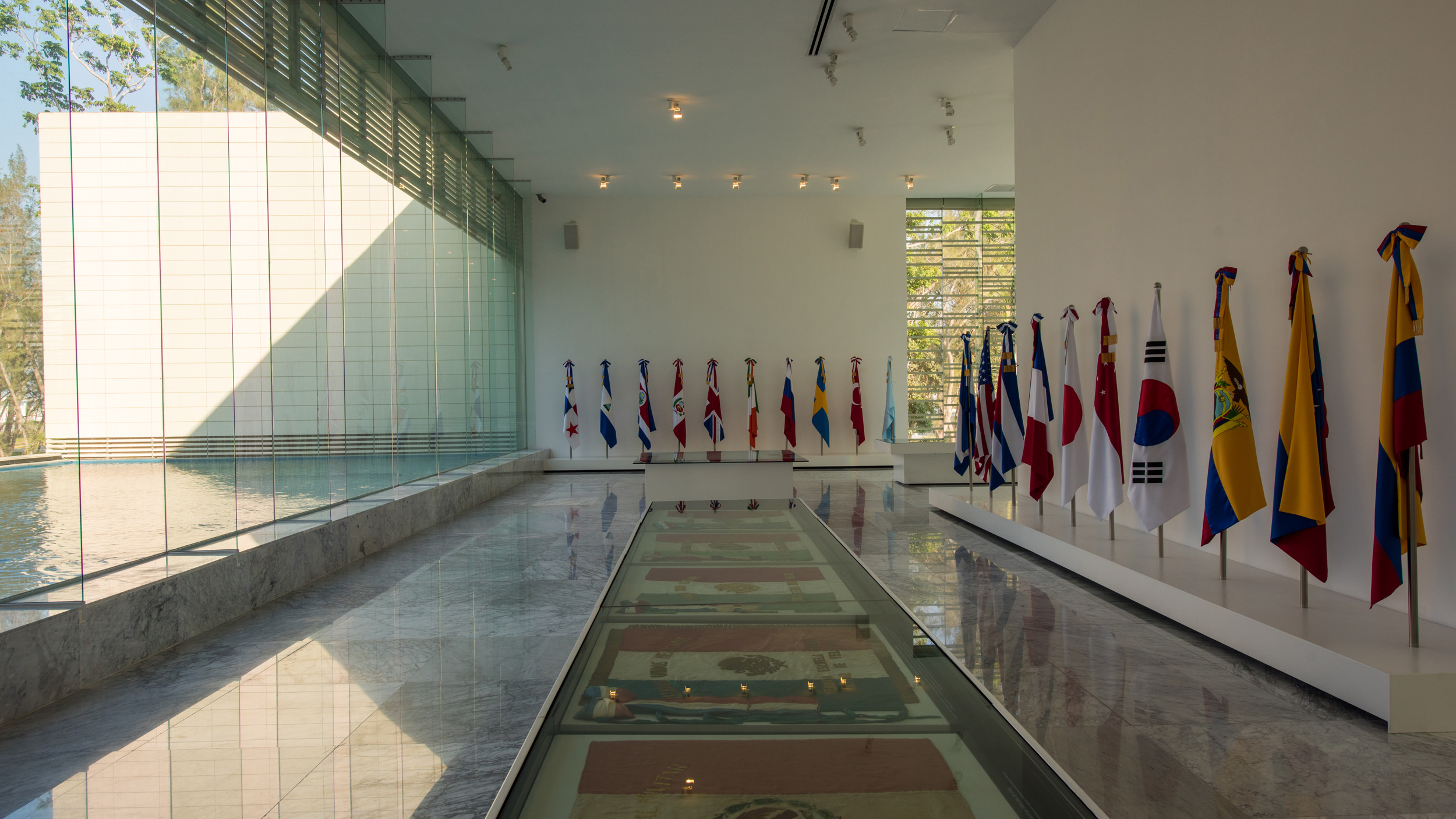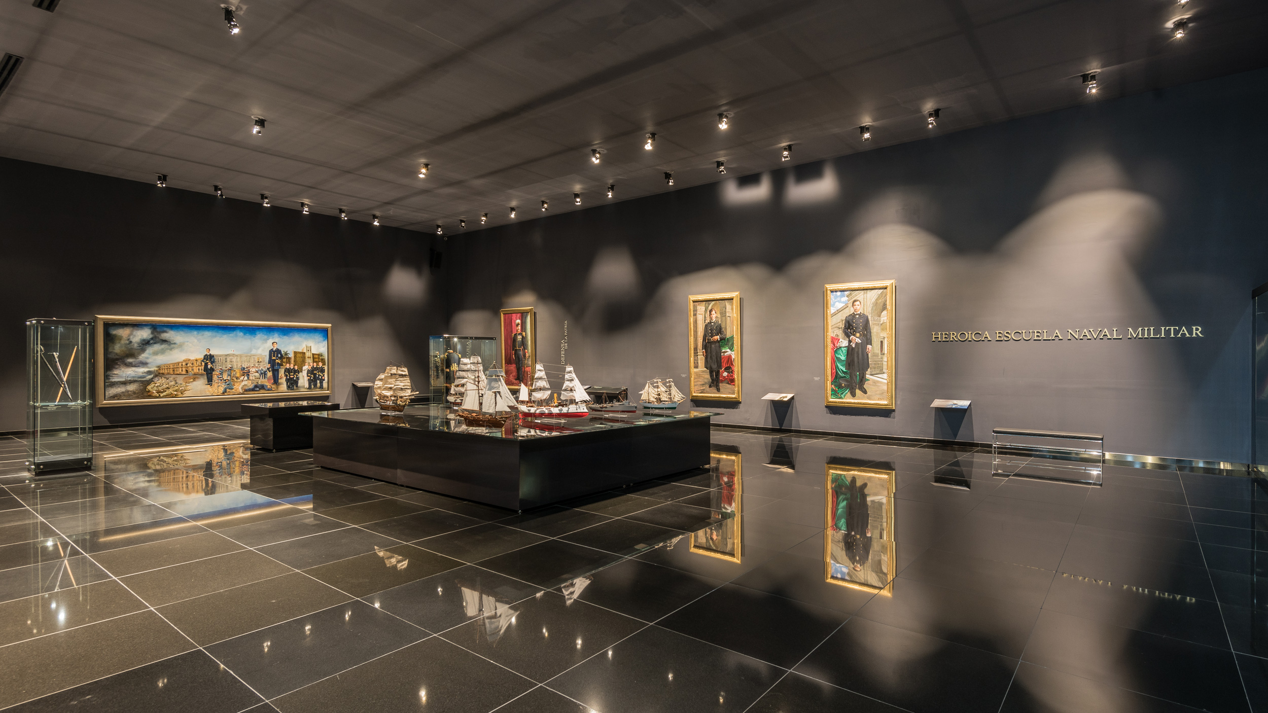 • Su interior está conformado por espacios donde se presentan diferentes temas alusivos a la Marina, como la sala oscura con la puesta museográfica, la zona del pebetero con la llama eterna y las sala luz interactuando con el gran espejo de agua al exterior