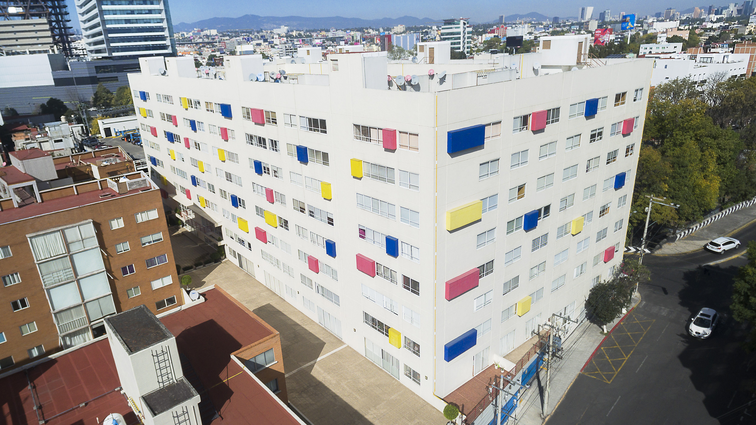 • Edificio ubicado en una cabeza de manzana que se integra como un ensamble urbano atractivo por su altura y volumen.