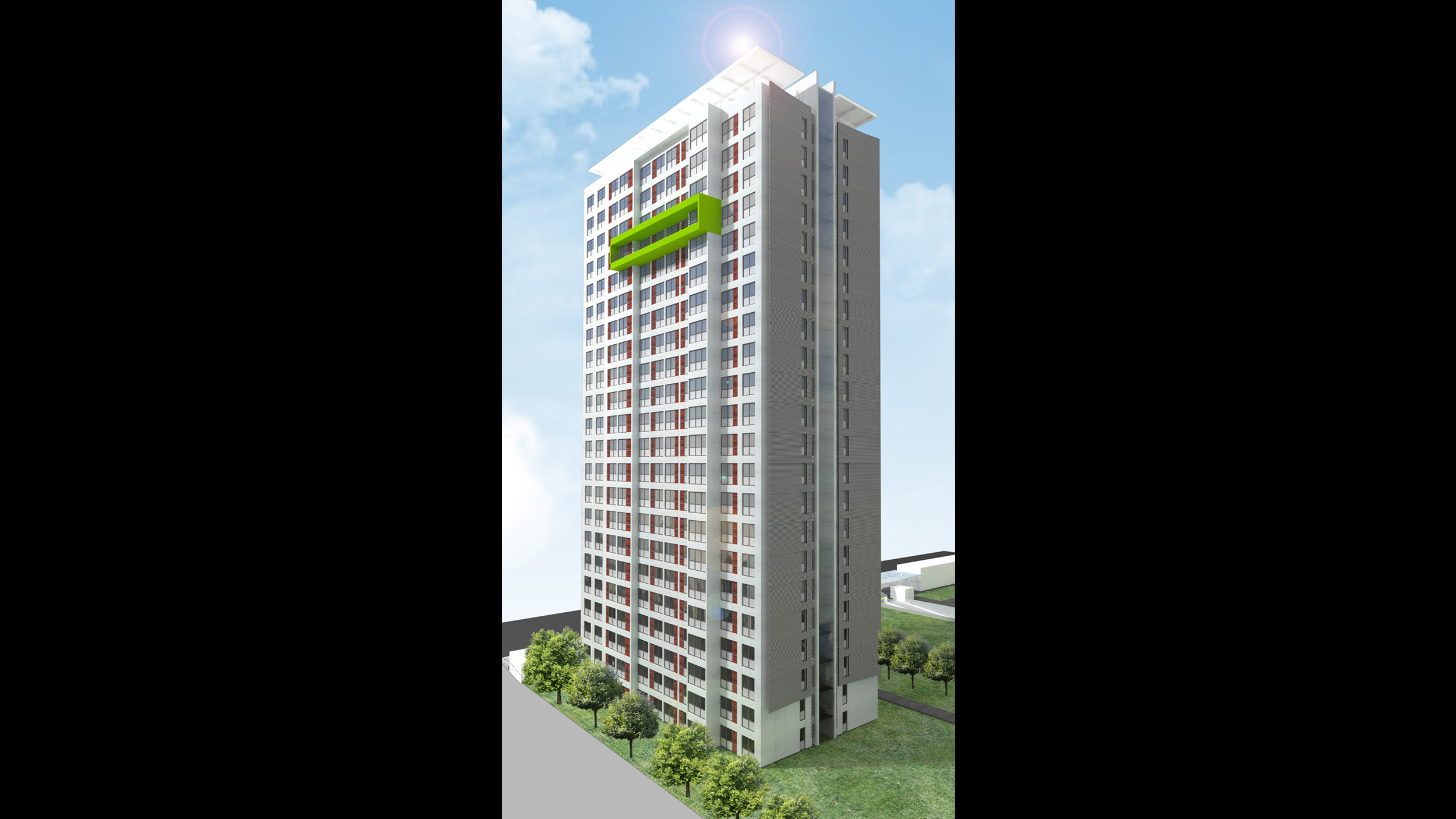 • Conjunto residencial conformado por 5 bloques de edificios de 22 niveles emplazados perpendicularmente al frente del terreno.