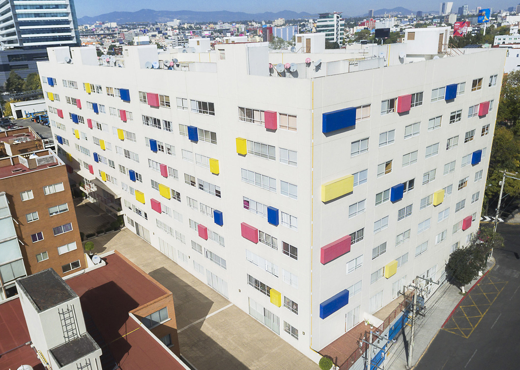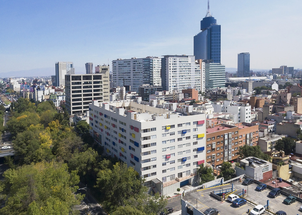 • Edificio ubicado en una cabeza de manzana que se integra como un ensamble urbano atractivo por su altura y volumen.