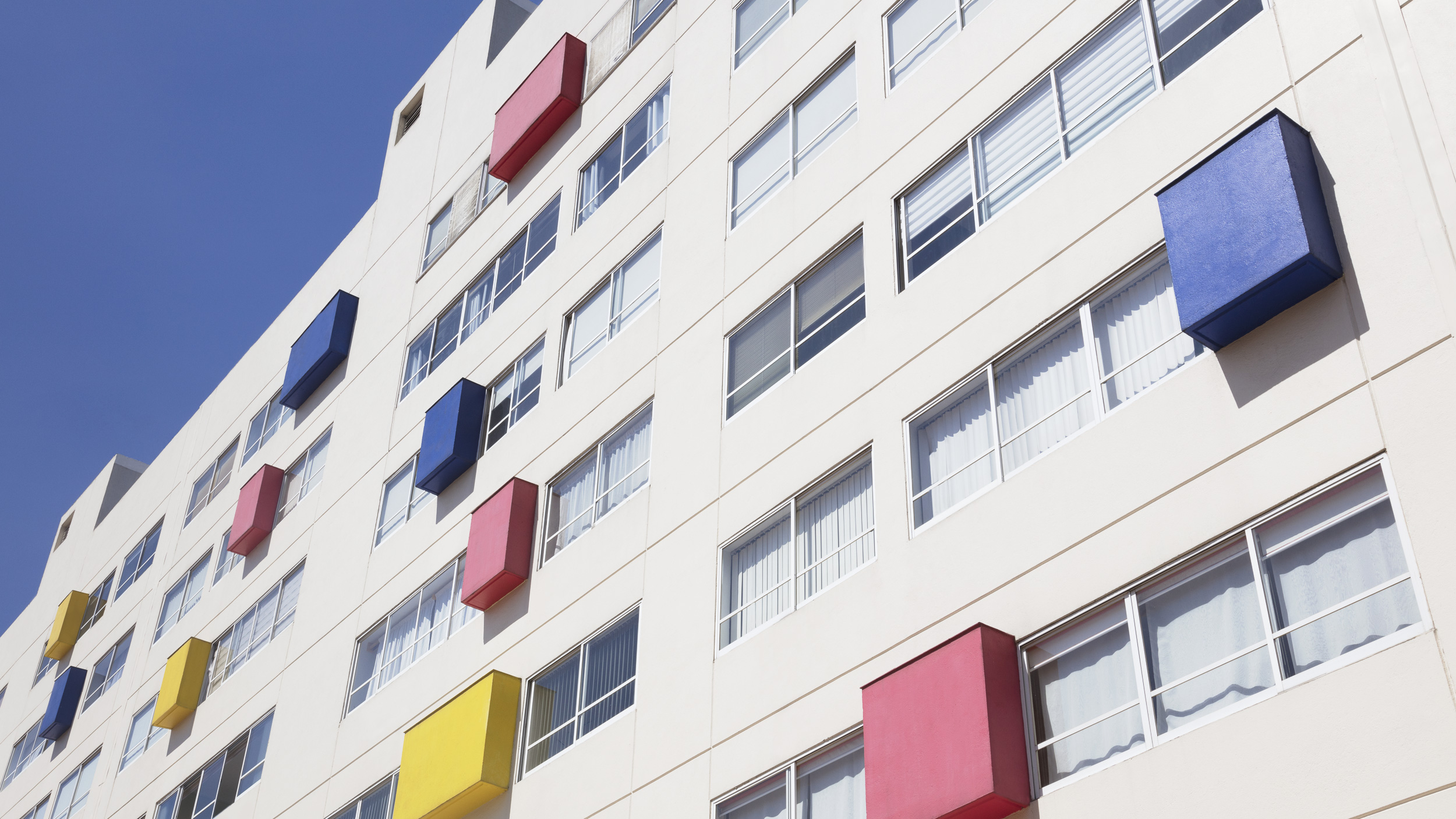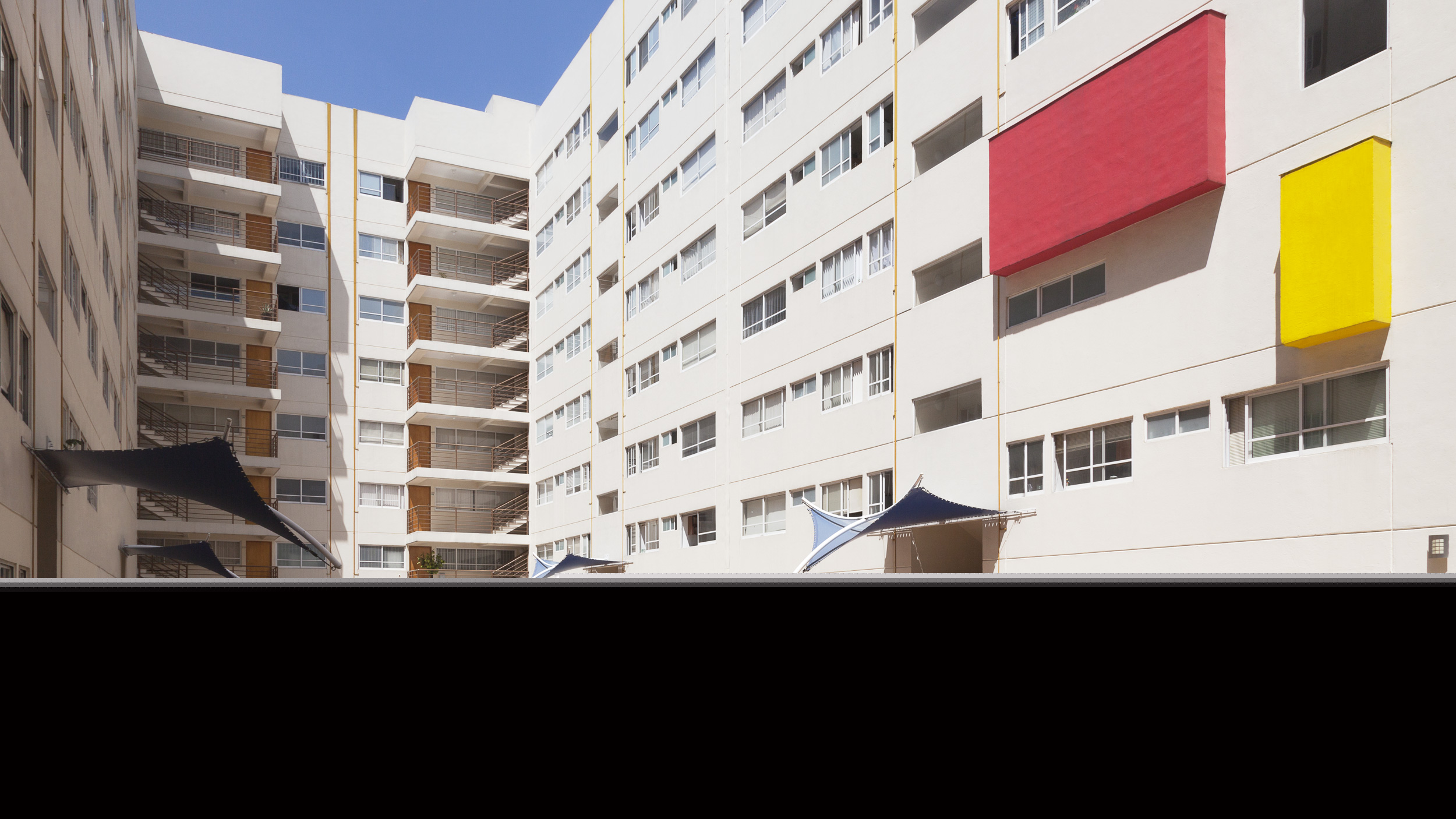 • Volumen de ocho niveles que aprovecha sus cuatro orientaciones confinando un patio central aislado del ruido para albergar 134 departamentos.