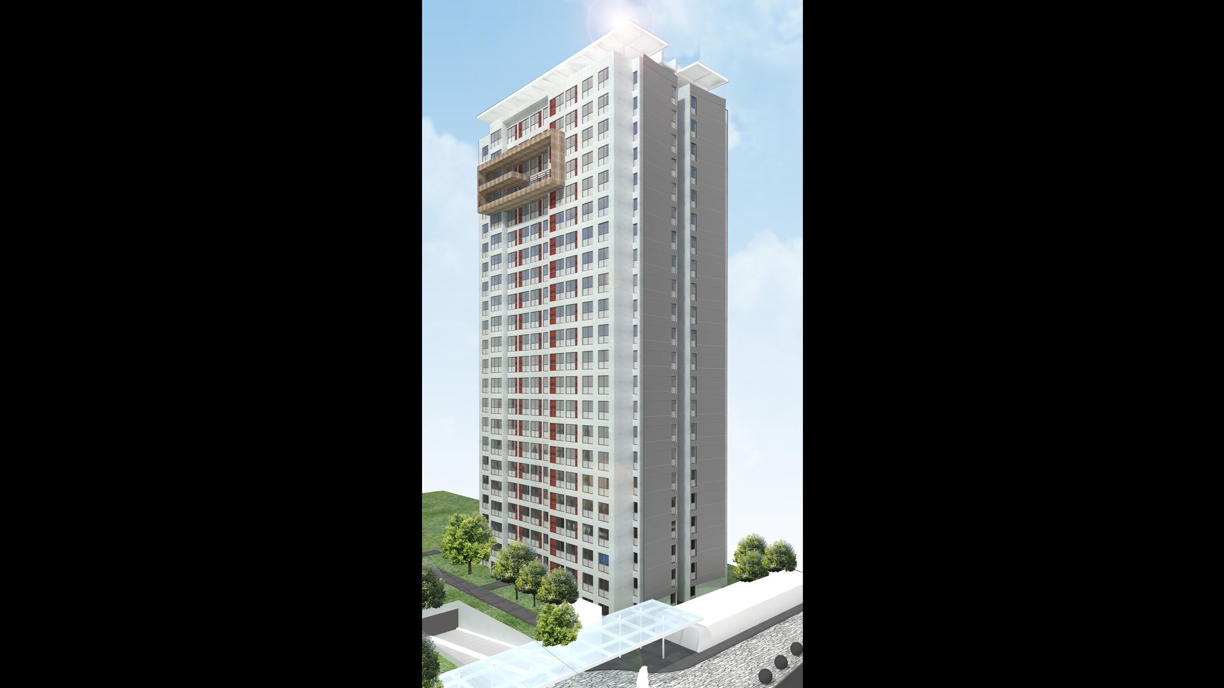 • Conjunto residencial conformado por 5 bloques de edificios de 22 niveles emplazados perpendicularmente al frente del terreno.