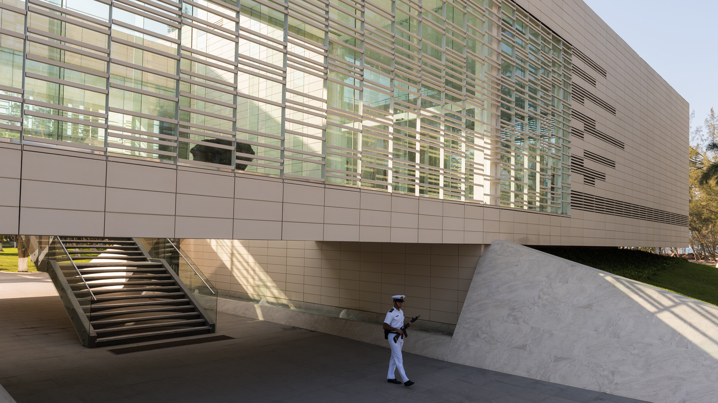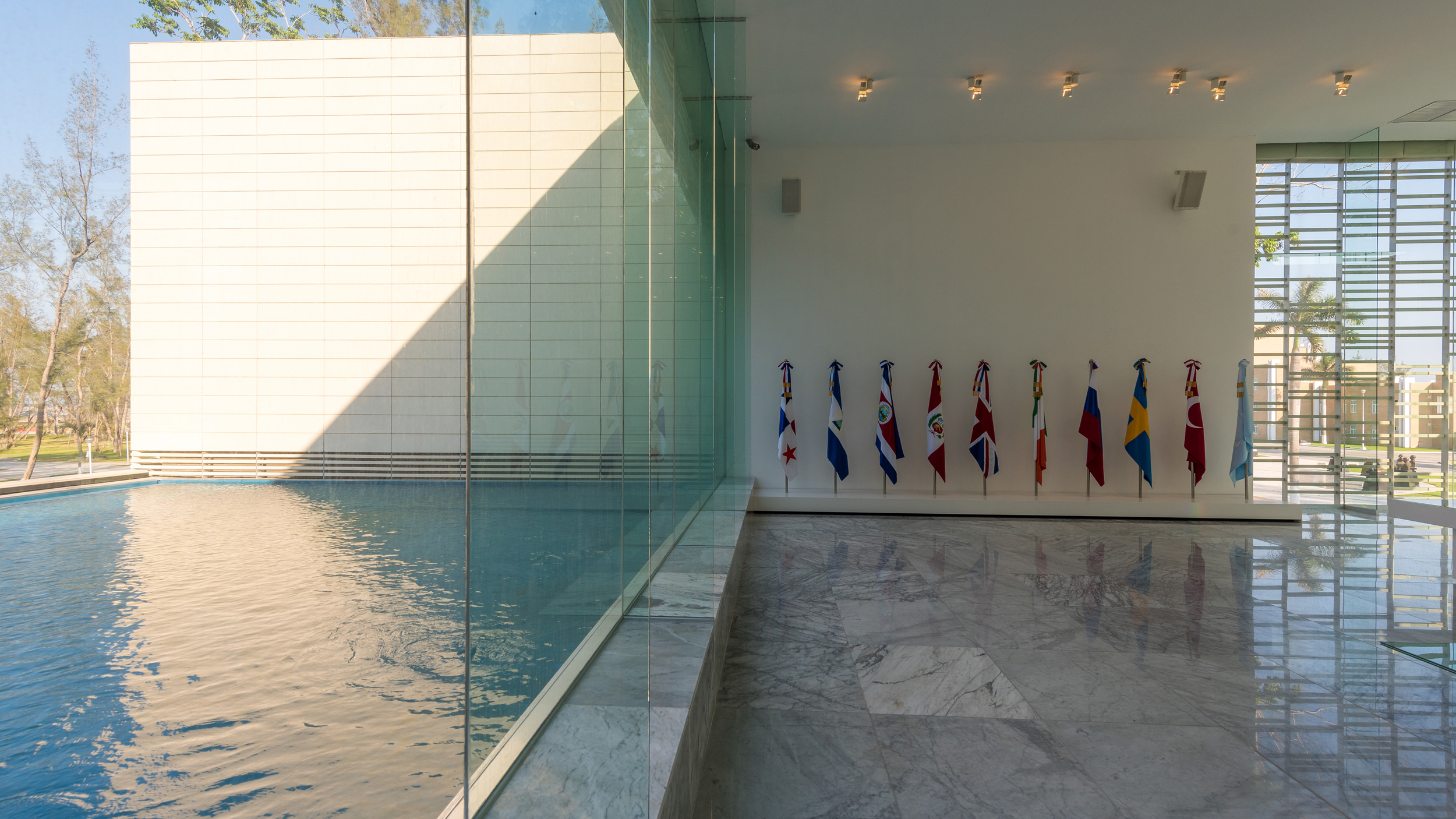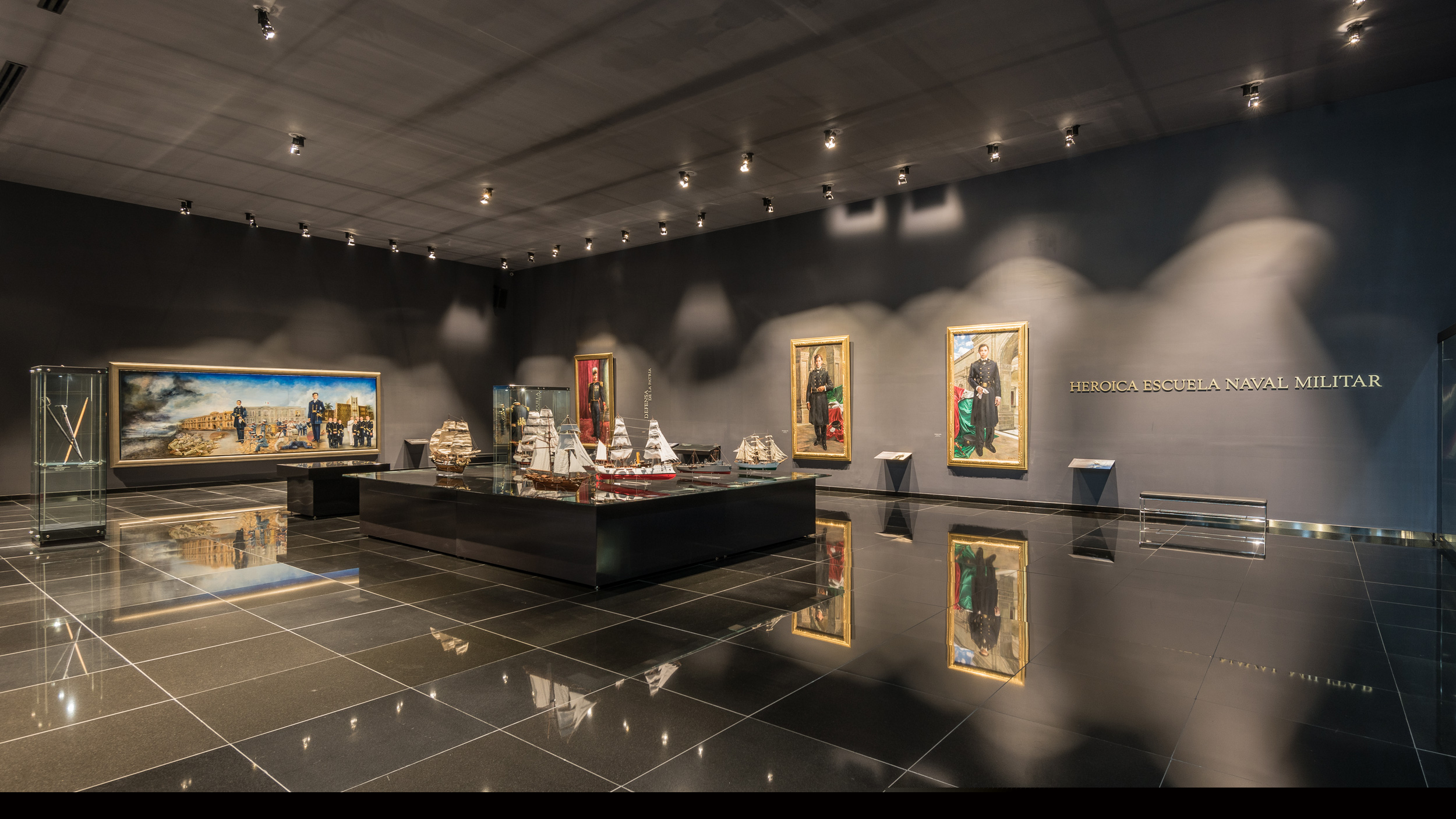• Su interior está conformado por espacios donde se presentan diferentes temas alusivos a la Marina, como la sala oscura con la puesta museográfica, la zona del pebetero con la llama eterna y las sala luz interactuando con el gran espejo de agua al exterior